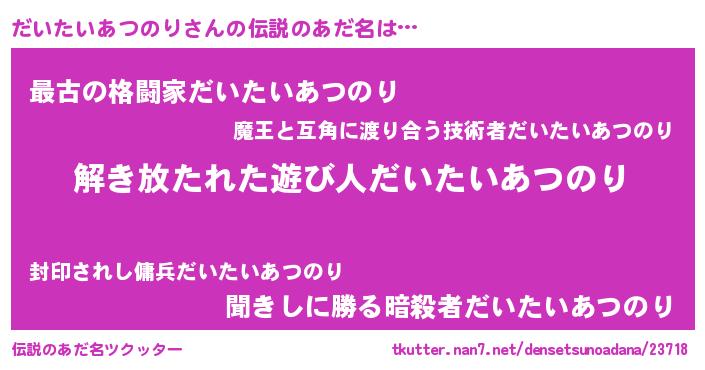 | 意味不明あだ名 | 『自称だいたいあつのり』 |