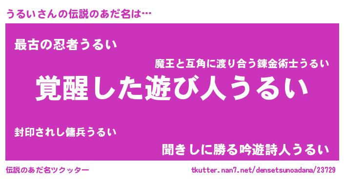 | 意味不明あだ名 | 『とにかく怪しいうるい』 |