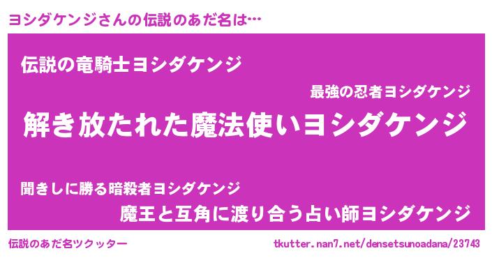 | 男性向けラノベタイトル風あだ名 | 『ダンジョンにヨシダケンジを求めるのは間違っているだろうか』 |