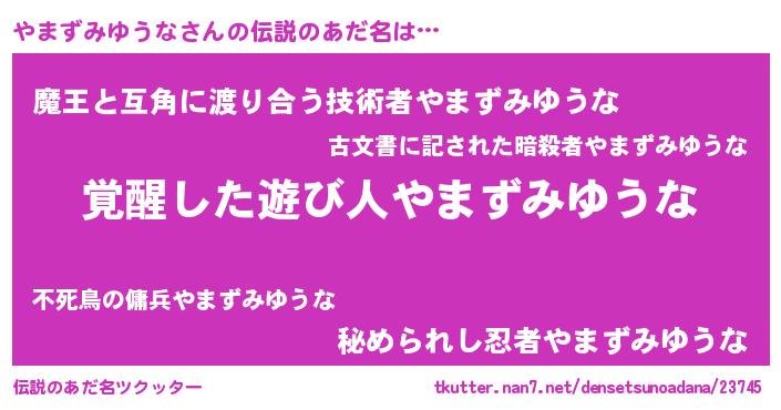 | 女子向けラノベタイトル風あだ名 | 『やまずみゆうな様がみてる』 |