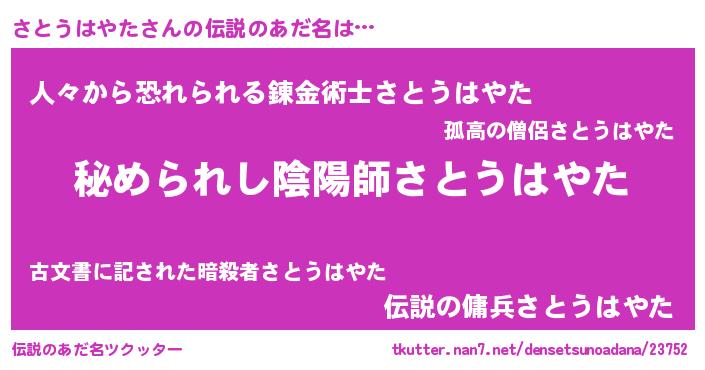 | ヒーロー風カッコイイあだ名 | 『ウルトラさとうはやたマン』 |
