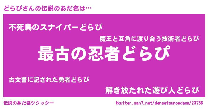 | 意味不明あだ名 | 『どらぴフォーエバー』『自称どらぴ』 |