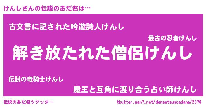 | ポケモン風あだ名 | 『ヒケンシ』『ゼニケン』『ケンゴンZ』 |