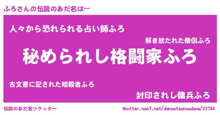 | 女子向けラノベタイトル風あだ名 | 『ふろの雑貨屋さん』『死神ふろの再婚』 |
