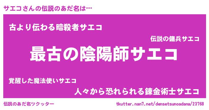 | ファンタジー風あだ名 | 『エターナルサエコー』『サエディッシュ』 |