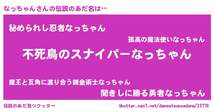 | 胡散臭い通販商品みたいなあだ名 | 『モテモテ間違いなし霊験あらたかなお札…その名も「なっちゃん」』 |