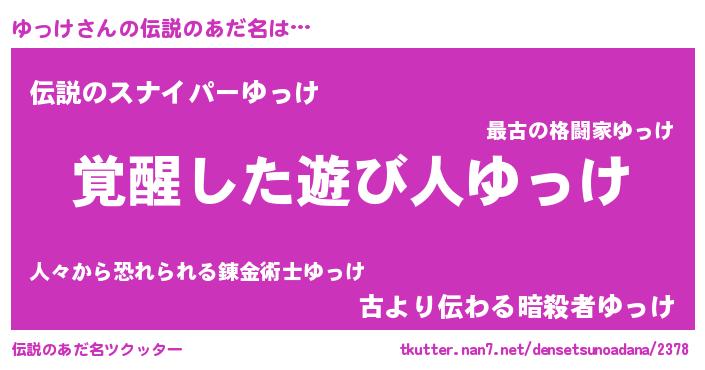 | 意味不明あだ名 | 『とにかく怪しいゆっけ』 |