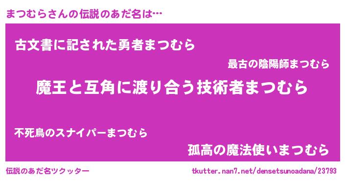 | ヒーロー風カッコイイあだ名 | 『愛の使者まつむら』『ネオマツムラ』 |