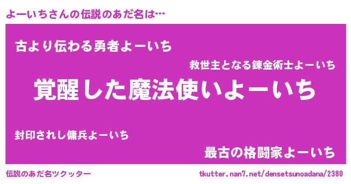 | 男性向けラノベタイトル風あだ名 | 『よーいちの嫁は女の子じゃないと思った?』 |