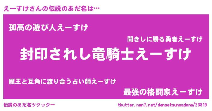 | 女子向けラノベタイトル風あだ名 | 『闇のえーすけ』『えーすけは平凡を望む』 |