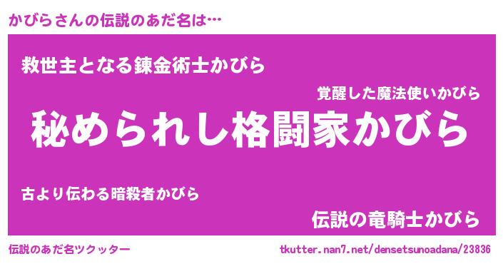 | ヒーロー風カッコイイあだ名 | 『ウルトラかびらマン』『スーパーカビラ』 |