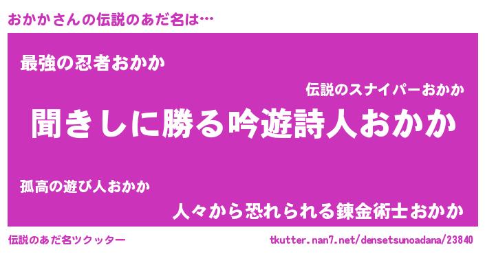 | 男性向けラノベタイトル風あだ名 | 『おかかという概念が存在しない退屈な世界 』 |