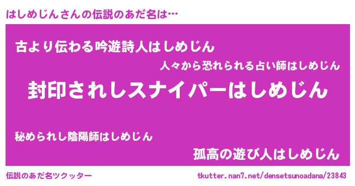 | 女子向けラノベタイトル風あだ名 | 『はしめじんストレイドッグス』 |