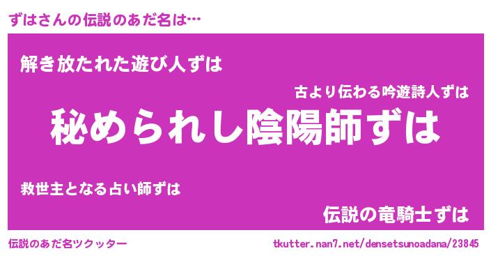 | ヒーロー風カッコイイあだ名 | 『ウルトラずはマン』『黄金騎士ズハ』 |