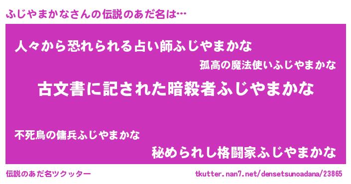 | 意味不明あだ名 | 『永久保存ふじやまかな』 |