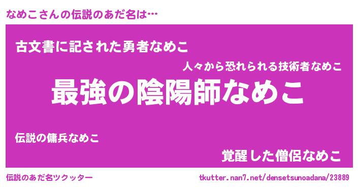 | ヒーロー風カッコイイあだ名 | 『仮面ナメダー』『ウルトラなめこマン』 |