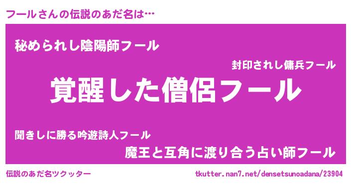 | 意味不明あだ名 | 『とにかく怪しいフール』『自称フール』 |