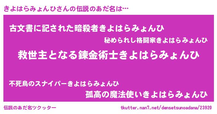 | ヒーロー風カッコイイあだ名 | 『天空の使者きよはらみょんひ』 |