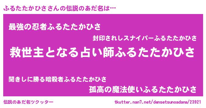 | ヒーロー風カッコイイあだ名 | 『最強戦士フルタタカヒサ』 |