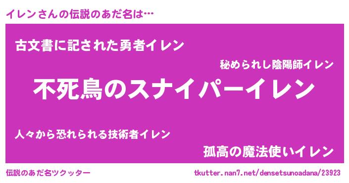 | 女子向けラノベタイトル風あだ名 | 『乙女ゲームの破滅フラグしかない悪役イレンに転生してしまった…』 |