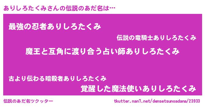 | ヒーロー風カッコイイあだ名 | 『愛の使者ありしろたくみ』 |