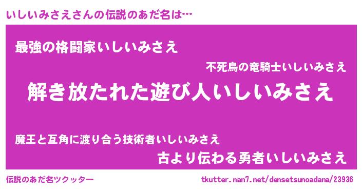 | 意味不明あだ名 | 『自称いしいみさえ』 |