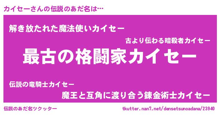 | ファンタジー風あだ名 | 『ゼカイトゥ』『エターナルカイセーー』 |