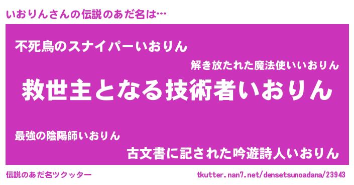 | 肩書あだ名 | 『いおりん助教授』『いおりん社長令嬢』 |