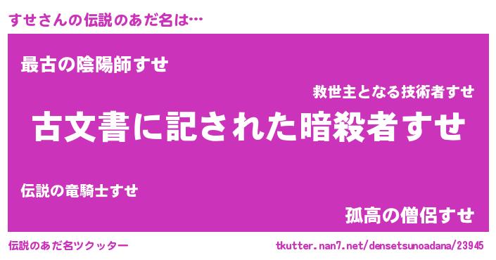 | 意味不明あだ名 | 『ニラ科すせ属』『永久保存すせ』 |