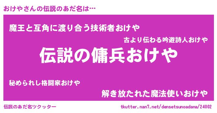 | 胡散臭い通販商品みたいなあだ名 | 『必ず成功する水晶球…その名も「おけや」』 |