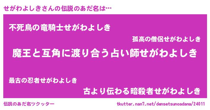 | ヒーロー風カッコイイあだ名 | 『愛の使者せがわよしき』『仮面セガダー』 |