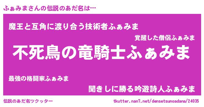 | 男性向けラノベタイトル風あだ名 | 『この素晴らしい世界にふぁみまを!』 |