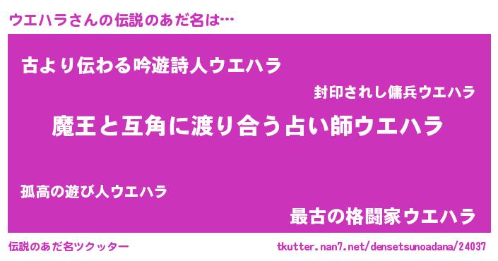 | ヘコむあだ名 | 『ウエハラ(爆)』『酢こんぶ』 |