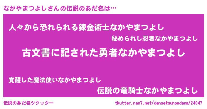 | 意味不明あだ名 | 『永久保存なかやまつよし』 |