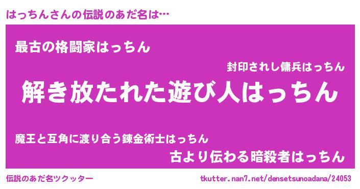 | 男性向けラノベタイトル風あだ名 | 『はっちんの嫁は女の子じゃないと思った?』 |