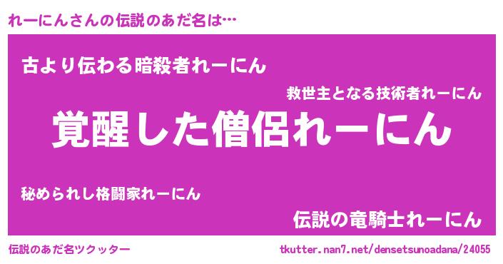 | ヒーロー風カッコイイあだ名 | 『炎刃騎士レー』『ネオレーニン』 |