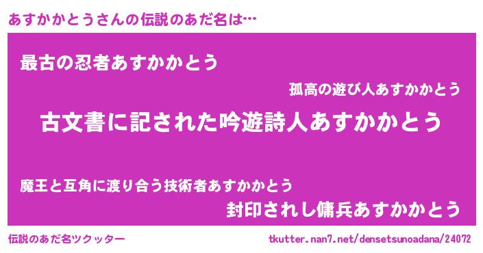 | 意味不明あだ名 | 『永久保存あすかかとう』 |