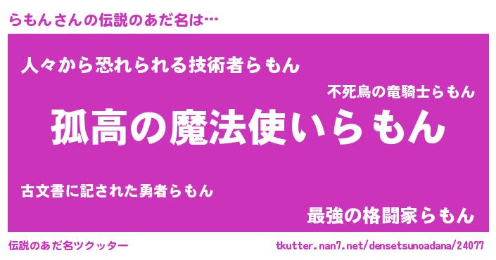 | 胡散臭い通販商品みたいなあだ名 | 『信頼と実績のサプリメント…その名も「らもん」』 |