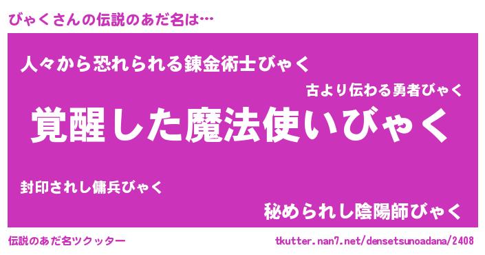| 意味不明あだ名 | 『とにかく怪しいびゃく』『自称びゃく』 |