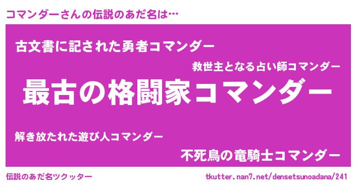 | 意味不明あだ名 | 『コマンダーフォーエバー』 |