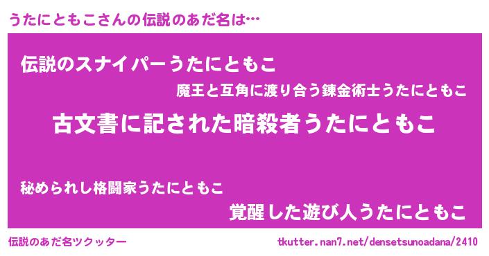 | 恥ずかしいあだ名 | 『うたちん』『プリティーうたにともこ』 |