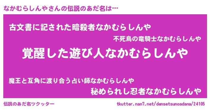 | 男性向けラノベタイトル風あだ名 | 『なかむらしんやの嫁は女の子じゃないと思った?』 |