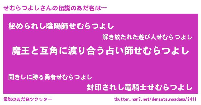 | 女子向けラノベタイトル風あだ名 | 『せむらつよし恋絵巻』 |