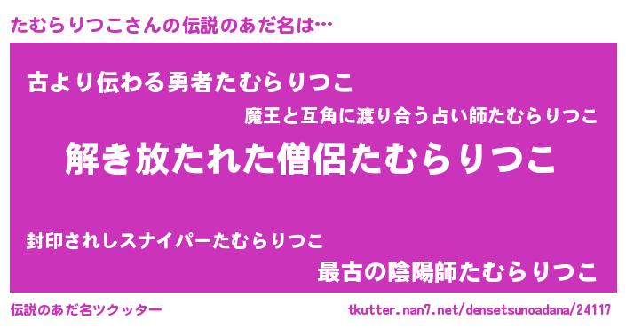 | 意味不明あだ名 | 『住所不定無職たむらりつこ(65歳)』 |