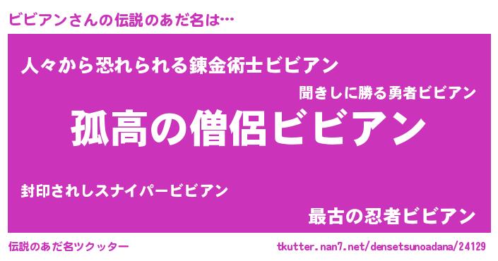 | ヒーロー風カッコイイあだ名 | 『魔戒騎士ビビ』『正義の使者ビビアン』 |