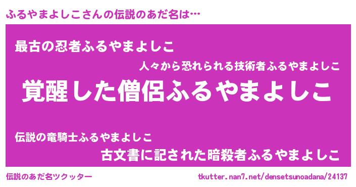 | 男性向けラノベタイトル風あだ名 | 『ふるやまよしこの嫁は女の子じゃないと思った?』 |