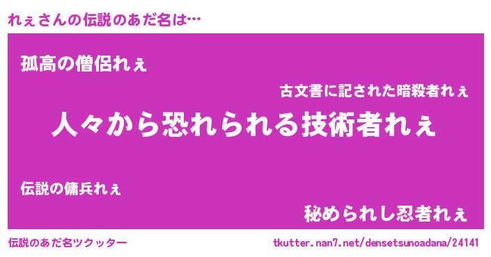 | ヒーロー風カッコイイあだ名 | 『正義の使者れぇ』『黄金騎士レェ』 |