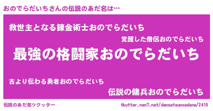 | 意味不明あだ名 | 『自称おのでらだいち』 |