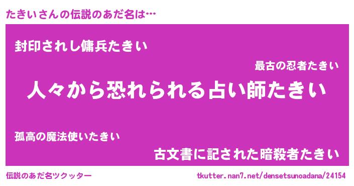 | 男性向けラノベタイトル風あだ名 | 『おまえをオタクにしてやるから、俺をたきいにしてくれ! 』 |