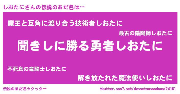| 胡散臭い通販商品みたいなあだ名 | 『絶対に幸福をもたらす水素水…その名も「しおたに」』 |